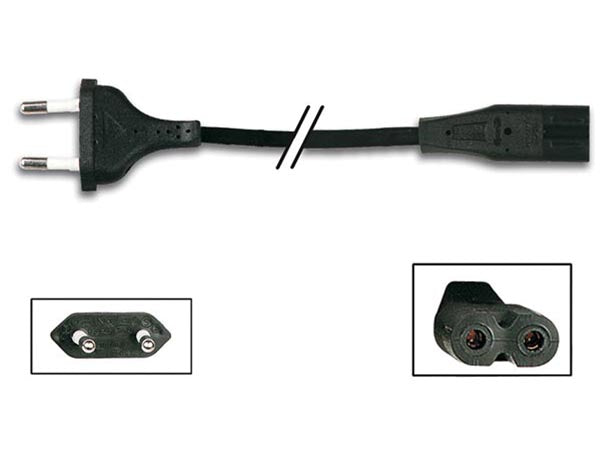 - Connections: EURO male (Type C CEE7/16) to C7 Device socket