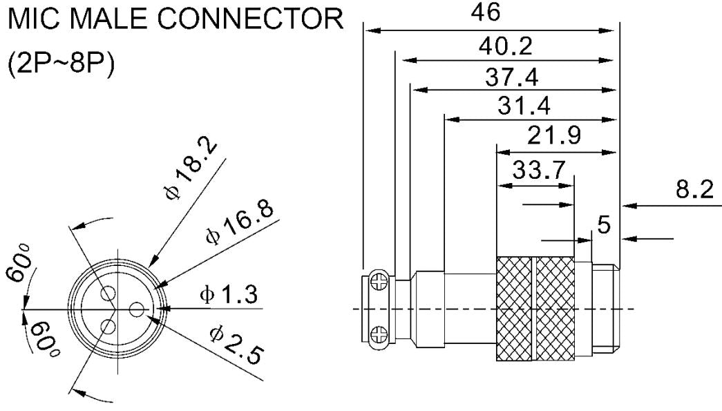 3-pol multistik. Anvendes såvel som ladestik, strømforsyningsstik og som mikrofon/højttalerstik. Tekniske detaljer: Antal kontakter: 3 Loddeforbindelser Gevind: Udvendig Gevinddiameter: 16,8mm Til kabe... Se mere