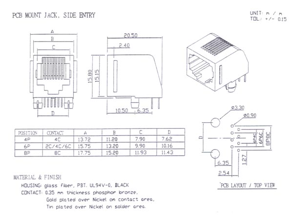 Også kendt som: Telephone And Modular Plugs > Modular Plugs > Modular Connectors, Pcb Mount, Side Entry