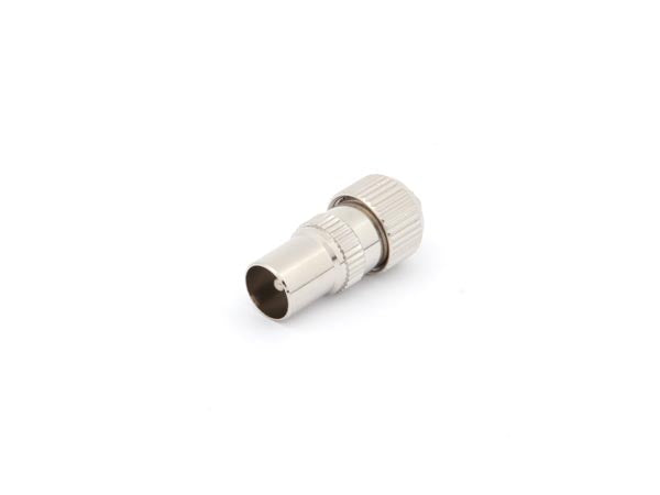 Tekniske detaljer: Type: Metal, HF tæt hanstik Montage: Værktøjsfri skruefæste omkring COAX antenneledning Passer til RG59 kabel op til Ø7mm (se tilbehør)