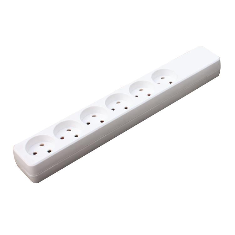 Stikdåse med 6 udtag m. DK jord. For montage af ledning og stikprop (se tilbehør) i ønsket længde. Mulighed for opspænding på væg. Tekniske detaljer: Udtag: 6 x DK jord Mærkespænding: 250V Maks. belastning: ... Se mere