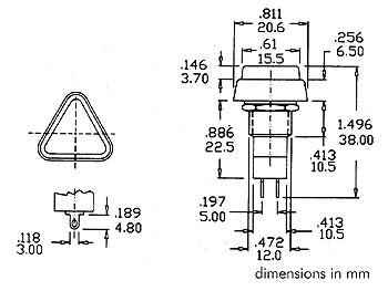 Trykkontakt - 1P OFF-(ON), Rød trekant