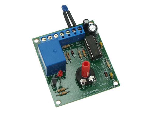 Enkel og pris-billig termostat / temperaturstyring til forskellige formål... Bemærk: Dette er et færdigsamlet modul. Enheden fås også som byggesæt (se WSHA138).