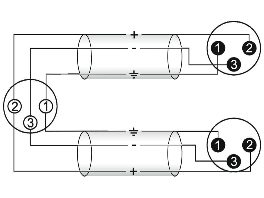 XLR kabel - 3P XLR hun > 2 x 3P XLR han, Sort (1,5m)