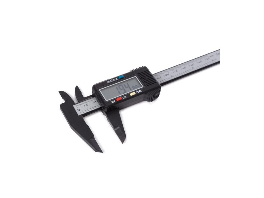 Måler op til 150mm (6") med en opløsning på 0,01mm. Digital udlæsning i mm på et 5 ciffers LCD display. Leveres inkl. batteri. Egenskaber: Materiale: Plast For indvendig og udvendig måling Tekniske detaljer... Se mere