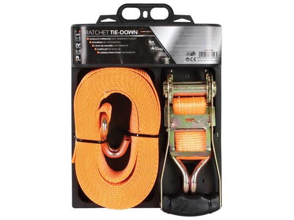 - Heavy-duty ratchet tie-down