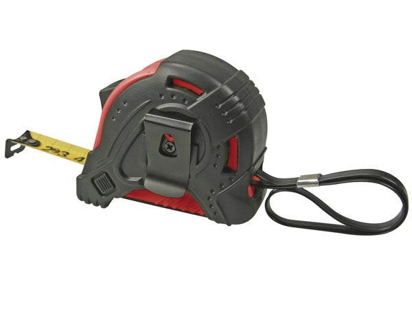 Egenskaber: Long-life nylon-coated tape Rubber-coated housing Two stop buttons Wrist strap Tekniske detaljer: Længde: 5m Bredde: 19mm Vægt: 265g