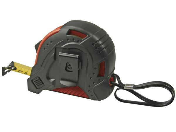 Egenskaber: Long-life nylon-coated tape Rubber-coated housing Two stop buttons Wrist strap Tekniske detaljer: Længde: 8m Bredde: 25mm Vægt: 450g