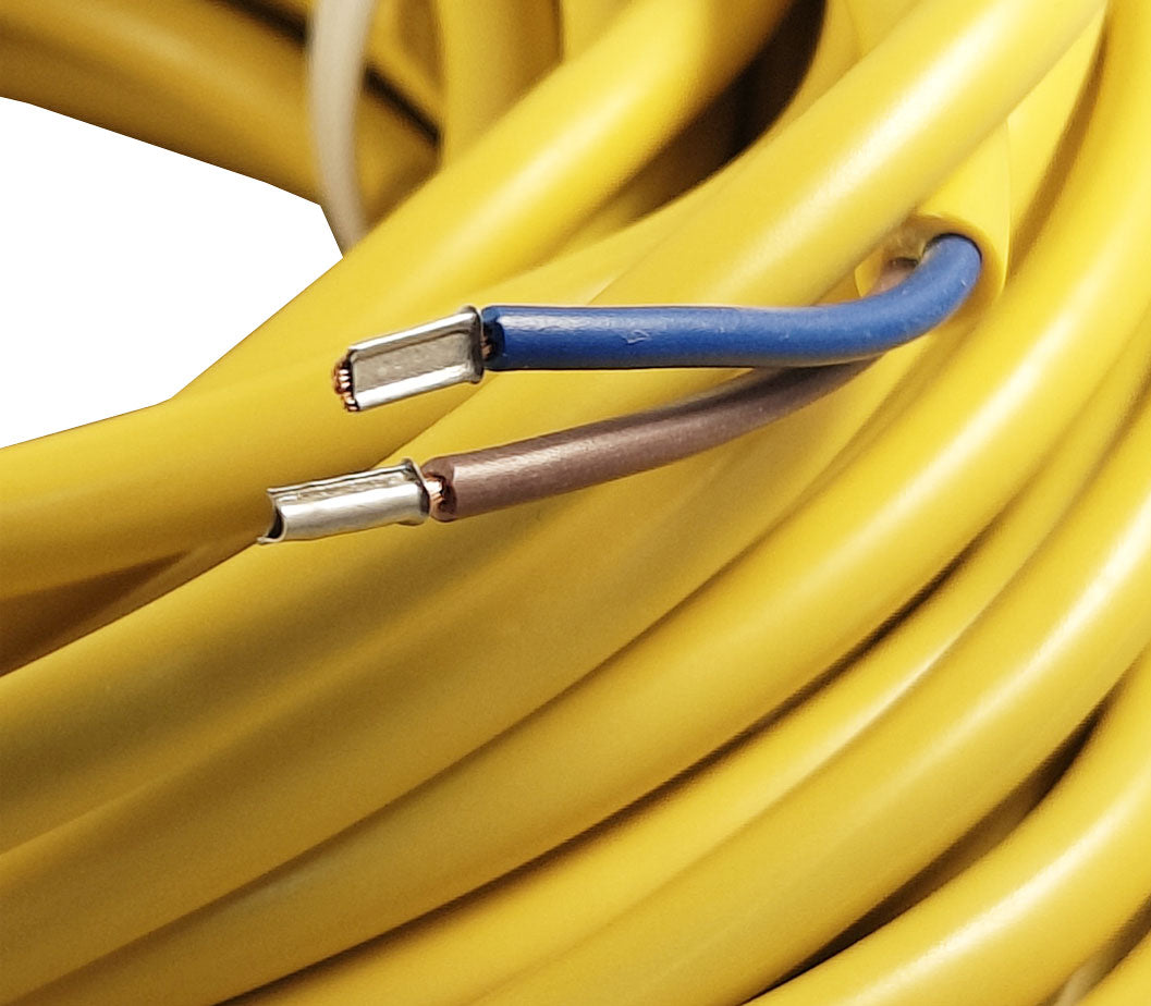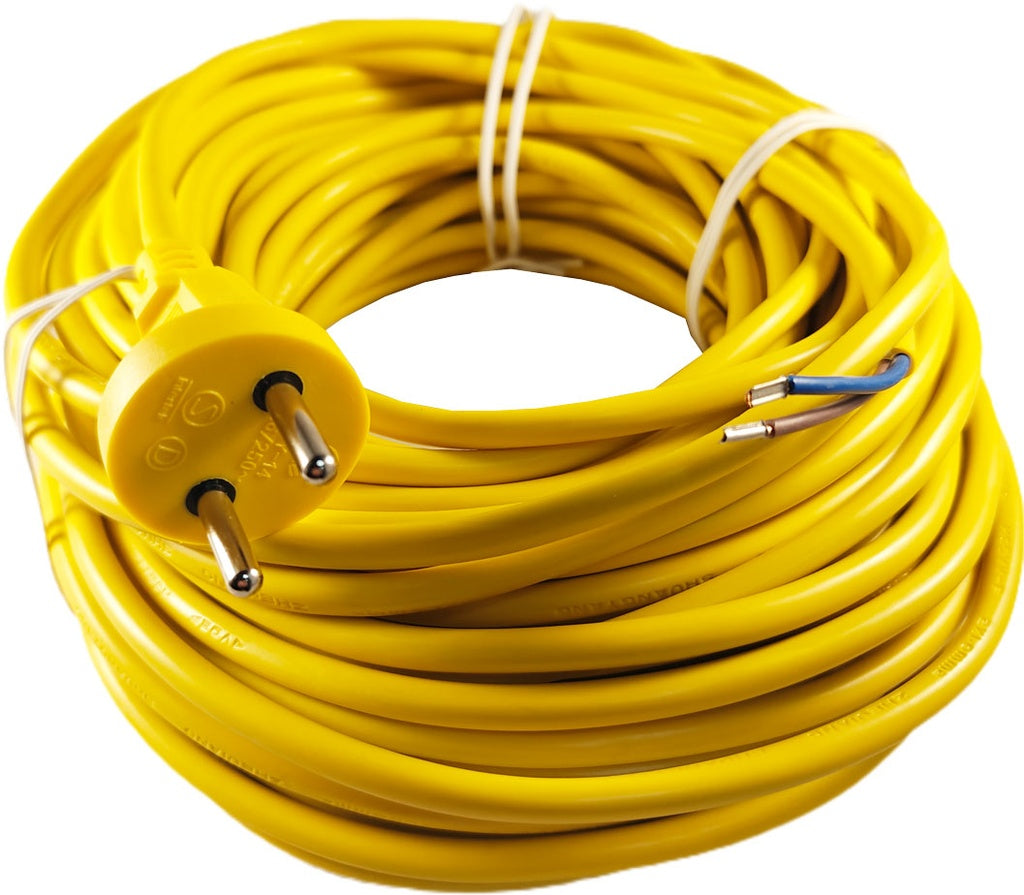 Strømkabel - CEE7/17 til løs ende, 2x1mm², Gul (20m)