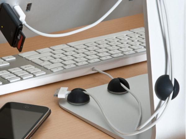 Selvklæbende kabelholdere i sort gummi. 5 stk. til nem fiksering af ledninger, som du ønsker ikke skal falde om bag ved skrivebordet. Også velegnet til kabelføring oppe under skrivebordet. Klæbemidlet afsætter ingen l... Se mere