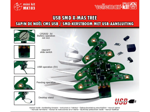 Mini-Kit: Det perfekte SMD-kit til juleferien. Let at montere. Den ideelle introduktion til SMD-teknologien. PC- eller batteridrevet. Bemærk: Dette er et byggesæt som kræver loddeudstyr (se tilbehør). Sværhedsgrad: L... Se mere