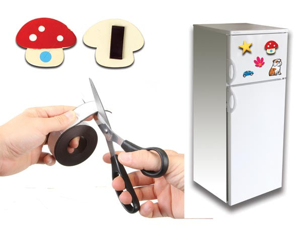 Praktisk magnetbånd, som kan afklippes med en alm. saks. Selvklæbende på den ene side og magnetisk på den anden.