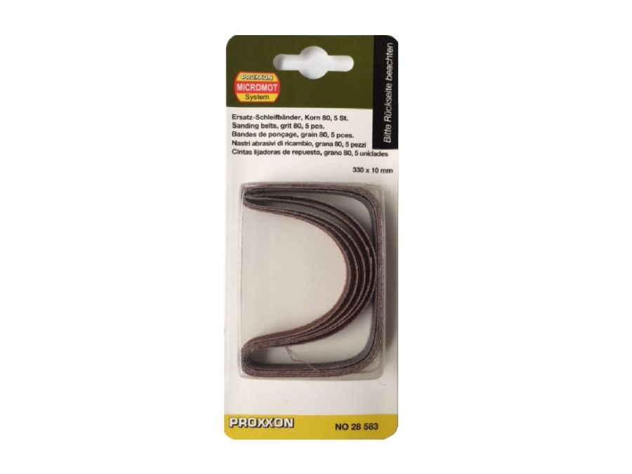 Proxxon slibebånd af ædelkorund er lavet på slidstærkt vævet underlag. Slibebåndet anvendes til effektiv slibning af metal, blødmetaller, træ og kunststof. Mål 10 x 330 mm. Slibebåndet har 80 korn pr. skive og leveres som 5 stk. pr. pakke. Passer til Proxxon båndsliber BS/E.