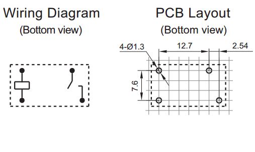 Miniature relæ - 12VDC 10A, 1 x slutte (SPST-NO), 4-ben 2,54