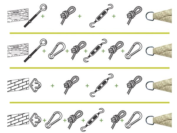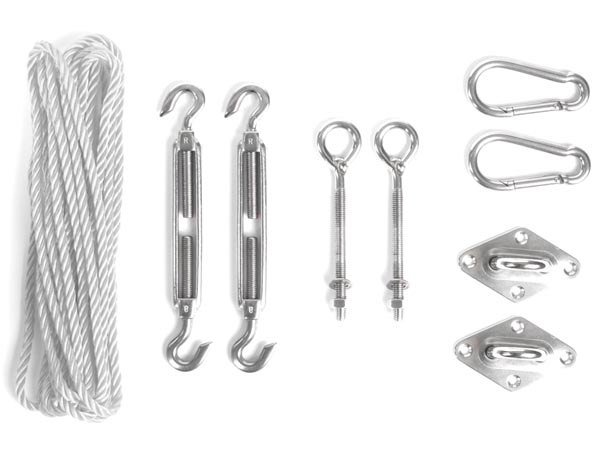 Monteringsæt til solsejl/tørresnor - Bardunstrammer mm. (5m)