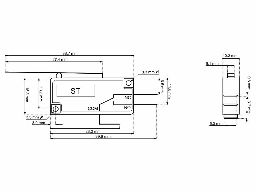 Tekniske detaljer: Aktuator type: Arm Betjeningskraft: 0,98 N Husmateriale: Polybutylen terephthalat polyester termoplast Kontakt-mærkestrøm: 5A ved 250VAC /125VDC Kontaktkonfiguration 1-polet skifte... Se mere