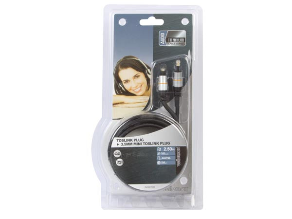 Digital optisk kabel i prof. kvalitet. Tekniske detaljer: Producent (varemærke): Velleman Stikforbindelser: A: TOSLINK han B: Mini TOSLINK han Længde: 2,5m