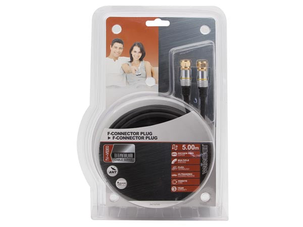 Egenskaber: Applications: Device A: antenna, receiver Device B: TV, LCD, PLASMA, TFT Tekniske detaljer: Kvalitet: Professional Længde: 5,0 m Connectors: A: F-connector B: F-connector
