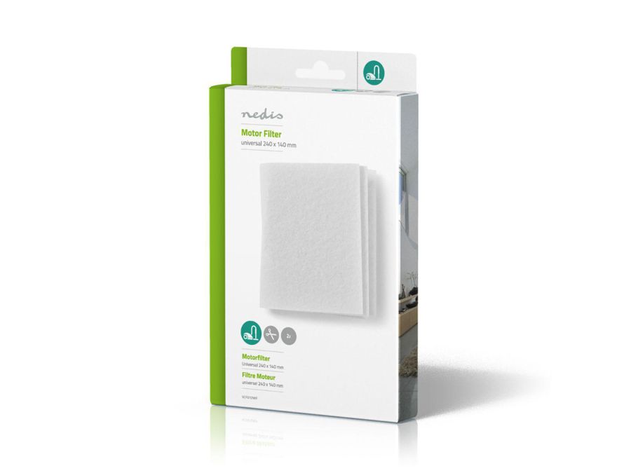 Universal motor filter for vacuum cleaners. Tekniske detaljer: Producent (varemærke): Nedis Tip: Use the old filter for the right measurements! 1x Motor filter 240 x 140mm