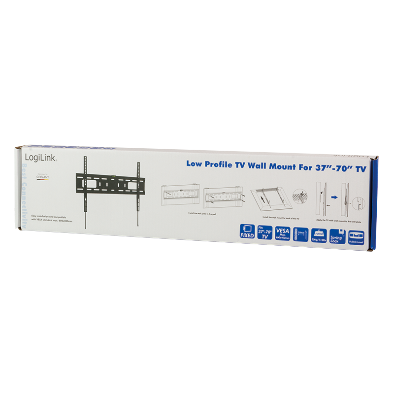 Create more space in your room and attach the screen particularly flat to the wall. Ideal for the regular TV in the living room. Delivered with all necessary mounting parts (screws, anchors and spacers).