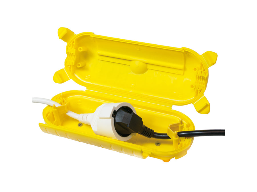Protective capsule for secure connection of plug and coupling and to protect against moisture/dampness. Ideal when working with electrical equipment outdoors. IP44 protection.
