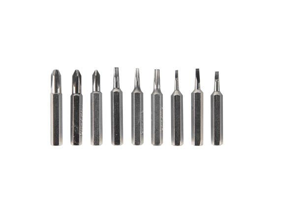 Super handy mini-skruetrækker med bit-holder i kuglepensformat. De 9 bits opbevares inden i bit-holderen. Aluminiums bit-holder og bits in CR-V 6150 kvalitetsstål.