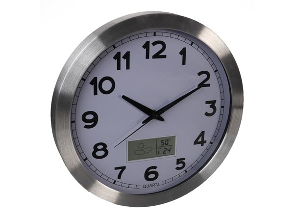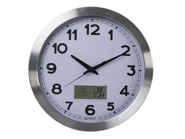 Analog vægur m. LCD display - Termo- og hygrometer, Ø35cm