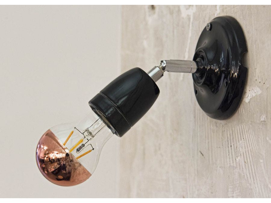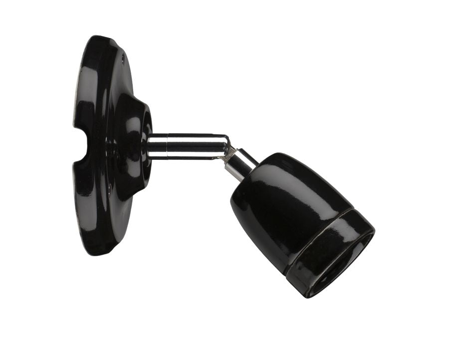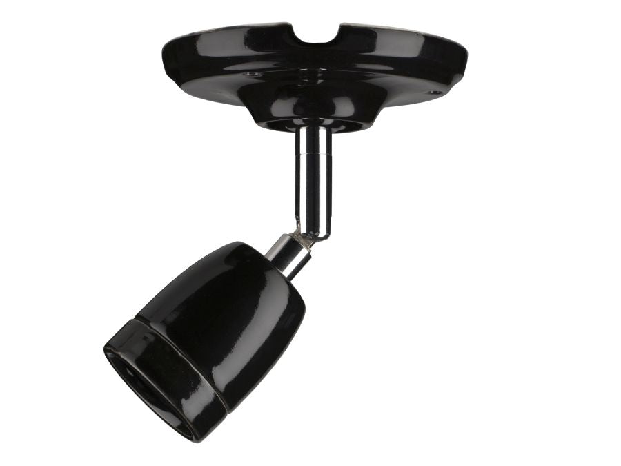 Loft/Væg fatning - E27, Justerbar, Porcelæn, Sort