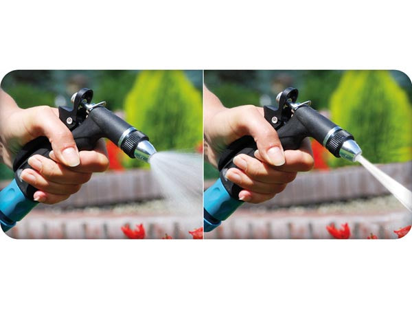 Egenskaber: Fremstillet af aluminium og plast Trinløs regulering af vandstrømmen og dens styrke fra stærk stråle til delikat tåge Praktisk udløserlås Tekniske detaljer: Maksimalt tryk: 6 bar Materiale... Se mere