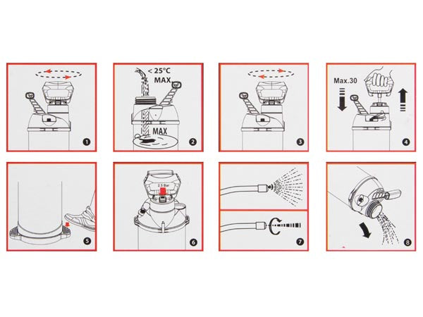 Suitable for solvent-free liquids: water, fertilizers, herbicides, pesticides, cleaning detergents, preservative treatments etc.