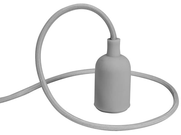Stofledning m. E27 fatning og baldakin - Grå (1,4m)