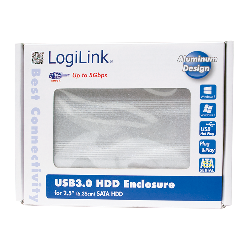 External aluminum case from LogiLink for installation and operation of 2.5 inch S-ATA hard drives. Standard size. Compatible with all notebook hard drives. Connection via PC or notebook via the fast USB 3.0 Super Speed interface. USB stands for Universal Serial Bus and is working with a transfer rate of up to 5 Gbit/s. The connection is simple and the device is recognized by modern operating systems automatically.