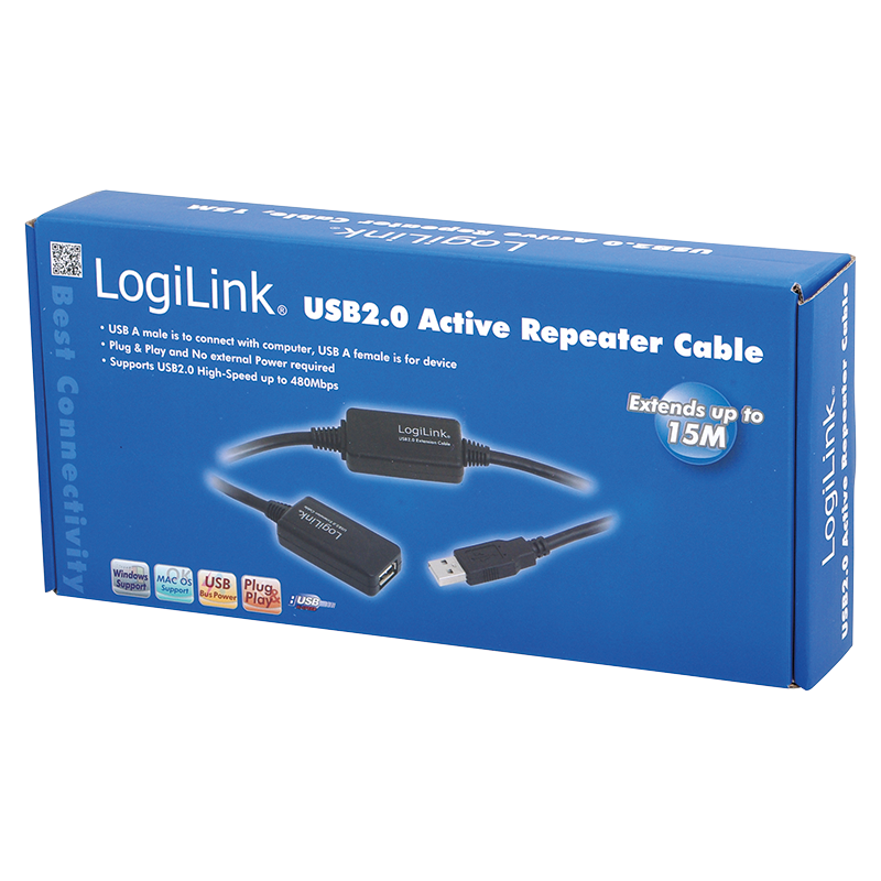The maximum USB cable length is 5 meters in accordance with standard. With this LogiLink cable repeater you can extend your USB 2.0 cable length to 15 meters. Through the shielding, it is protected from electromagnetic interference.