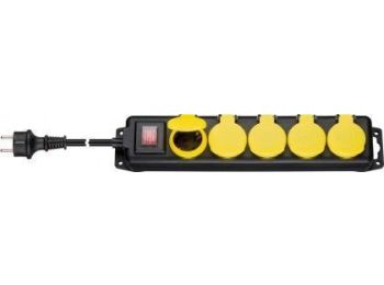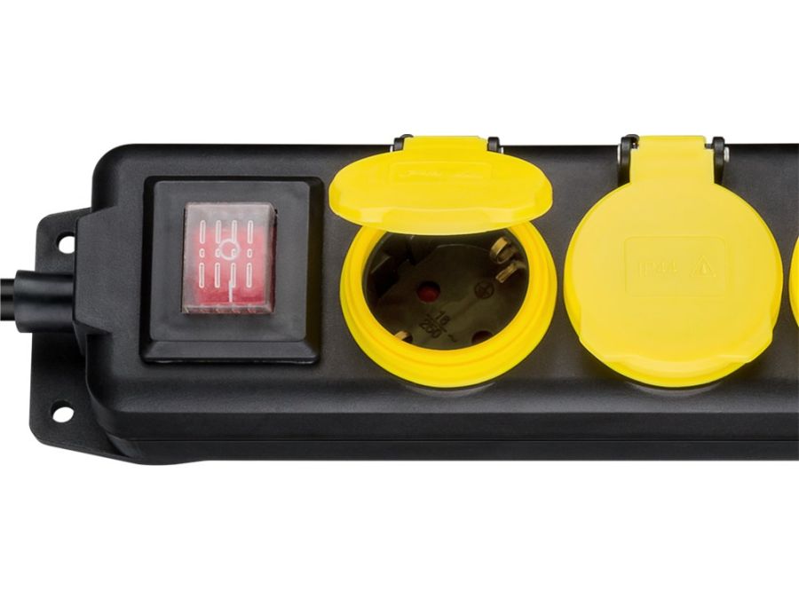 Udendørs stikdåse - 5 x CEE7/3, sort-gul, IP44, 16A (3m)