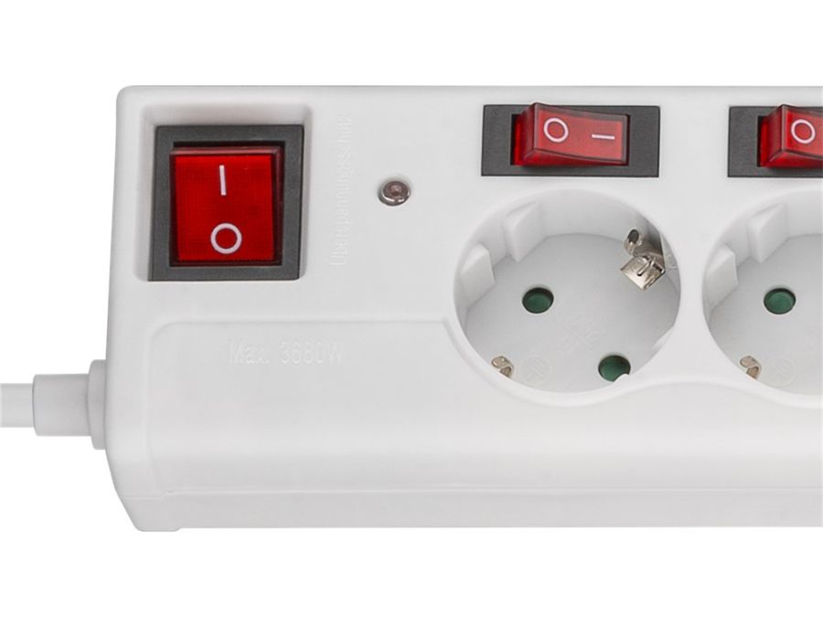 - Six illuminated switches for separately switching off individual devices and additional main switch for the whole socket strip