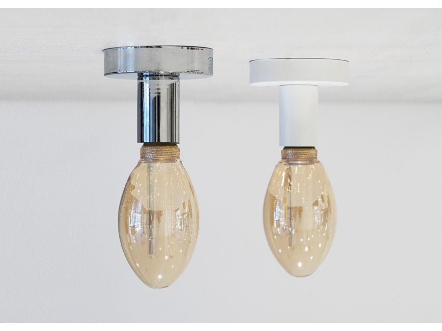 Tekniske detaljer: Model: Udvendigt monteret lampeholder Materiale: Metal Farve: Hvid Sokkel: E27 Med mont. beslag: Ja Nippelgevind: M10 x 1 Størrelse: Ø100 x 85mm Tekniske detaljer:... Se mere