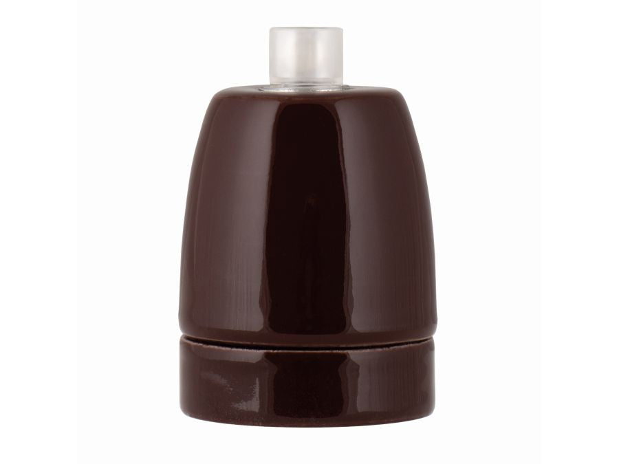 E27 Porcelænsfatning - Brun, m. trækaflastning