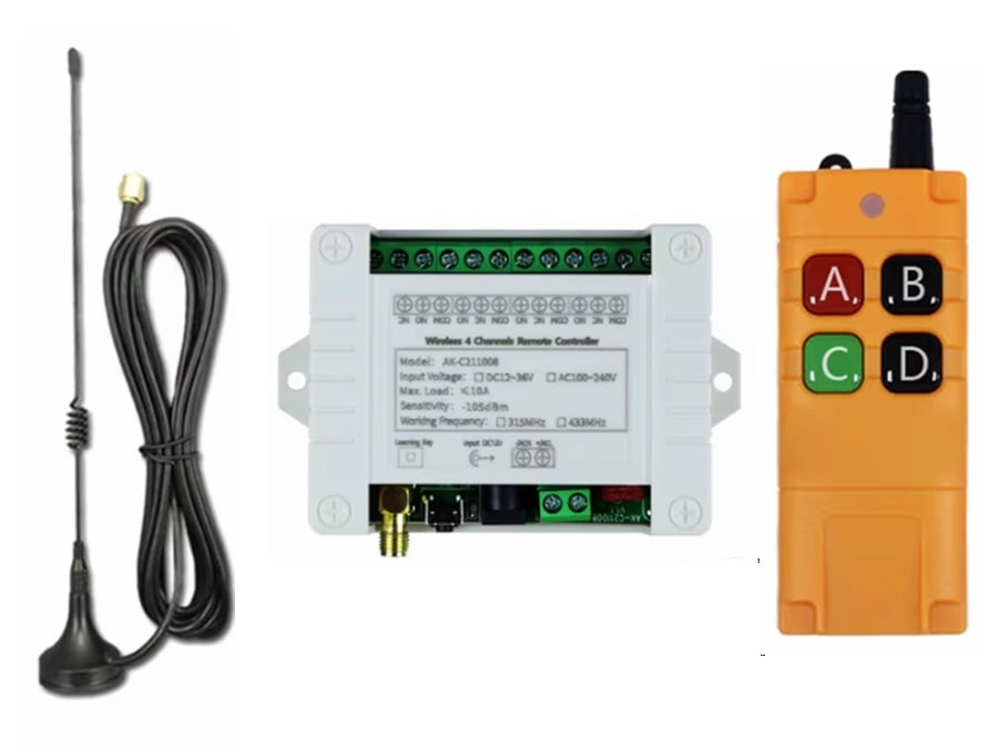 4 kanal RF fjernbetjeningssæt, 12-36Vdc ind, 10A (433MHz)