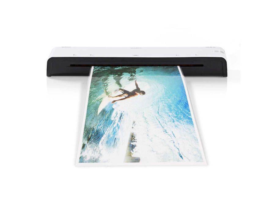 Slim and compact A3 laminator for homes or small offices to apply a protective layer to ID cards, business cards, menus etc. quickly and efficiently. The machine is suitable for hot and cold lamination and heats up in 4 to 6 minutes. It is equipped with a power-on and ready-to-use indication LED lamp and is suitable for a sheet thickness of 75 to 125 micron.