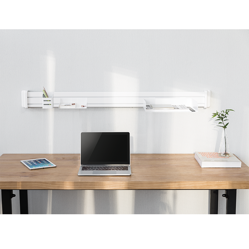 The organizing panel, also called "Slatwall", offers you the possibility to free your workplace from documents, pens and files and still keep them within reach. Simply place the desired elements such as shelves, monitor holders or pen holders on the rail, select the suitable attachment for wall or table mounting and fix it accordingly. In this way, you only keep the necessary things on the desk itself and gain more space for the really important things! Includes two wall mounting plates to fasten the panel at a wall.