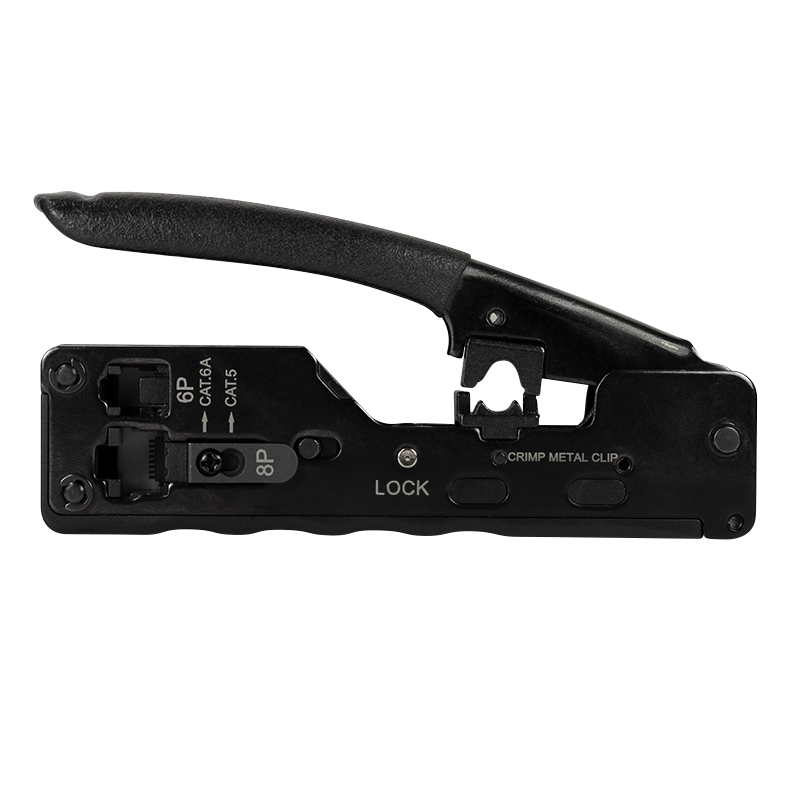 This professional crimping pliers is especially designed for shielded CAT.6A (CAT.7) connectors with strain relief clips, but also for all kinds of regular CAT.5e, CAT.6 and RJ11/12 modular plugs. This mighty tool is compact, rugged and nests comfortably in your hand. Its superior fit and function consistently meet your performance requirements