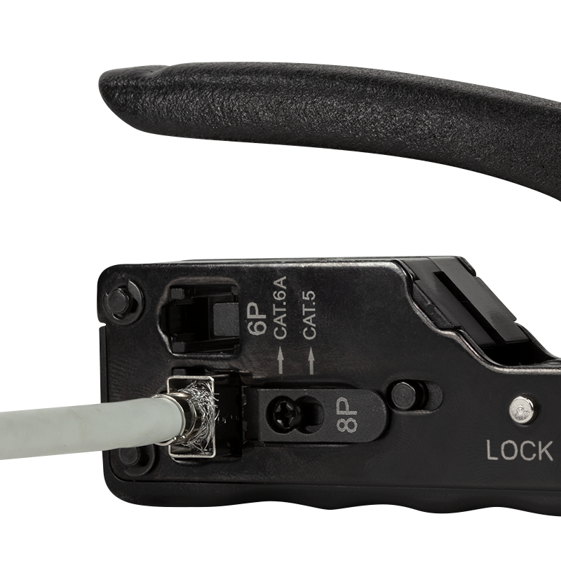 Denne professionelle kripetang er specielt designet til afskærmede CAT.6A (CAT.7) stik med stempelaflastningsklemmer, men også til alle slags almindelige CAT.5e, CAT.6 og RJ11/12 modularstik. Dette magtfulde værktøj er kompakt, robust og ligger komfortabelt i din hånd. Dets overlegne pasform og funktion opfylder konsekvent dine ydelseskrav