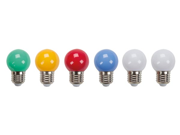 Egenskaber: Farver: 1 x rød 1 x gul 1 x blå 1 x grøn 1 x hvid 1 x varm hvid Tekniske detaljer: Type LED: SMD 3528 Antal LED'ere: 6 Effekt: 0,6W (hver lampe) Feat... Se mere
