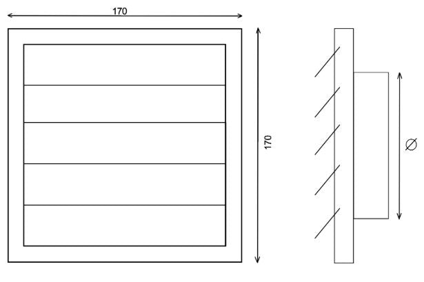 Luftudsugningsventilationrist med lukkespjæld. Monteres uden for bygning. Tekniske detaljer: Materiale: ABS plast Form: Firkantet Størrelse: 170 x 170 x 48mm Rørmonteringsdiameter (Ø): 99mm Farve: ... Se mere