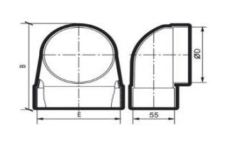 Rund til rektangulær (vinklet) - Ø55m til 97mm