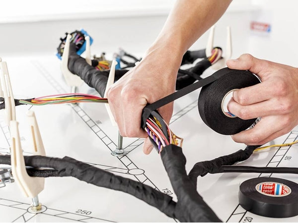 TESA® 51006 is a PET cloth tape with a rubber-based adhesive providing reliable abrasion protection of automotive harnesses. The high initial tack, a constant unwind force and the flexible backing enable smooth and efficient application in the car body.