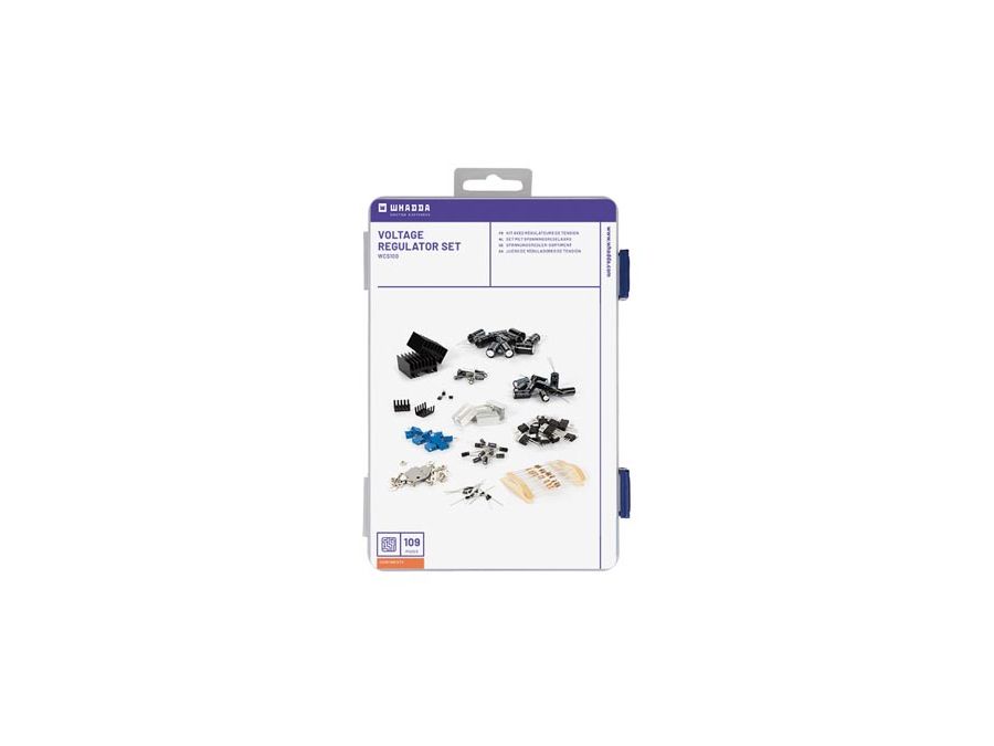 Starter set to build your own voltage regulators. Heatsinks, electrolytic capacitors, diodes, screws and resistors are all included.