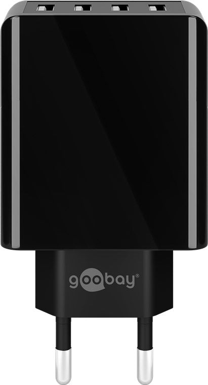 Netadapter - 100-240V til 4 x 5V USB-A, 2x3A (30W), Sort