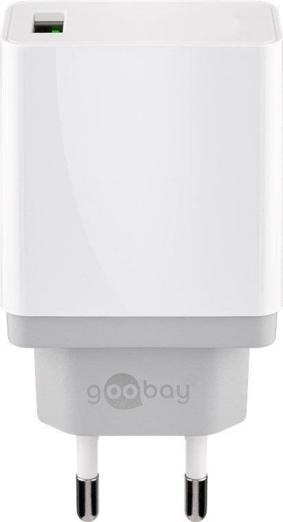 Netadapter - 5Vdc 18W, QC3.0 lynopladning, USB-A, Hvid