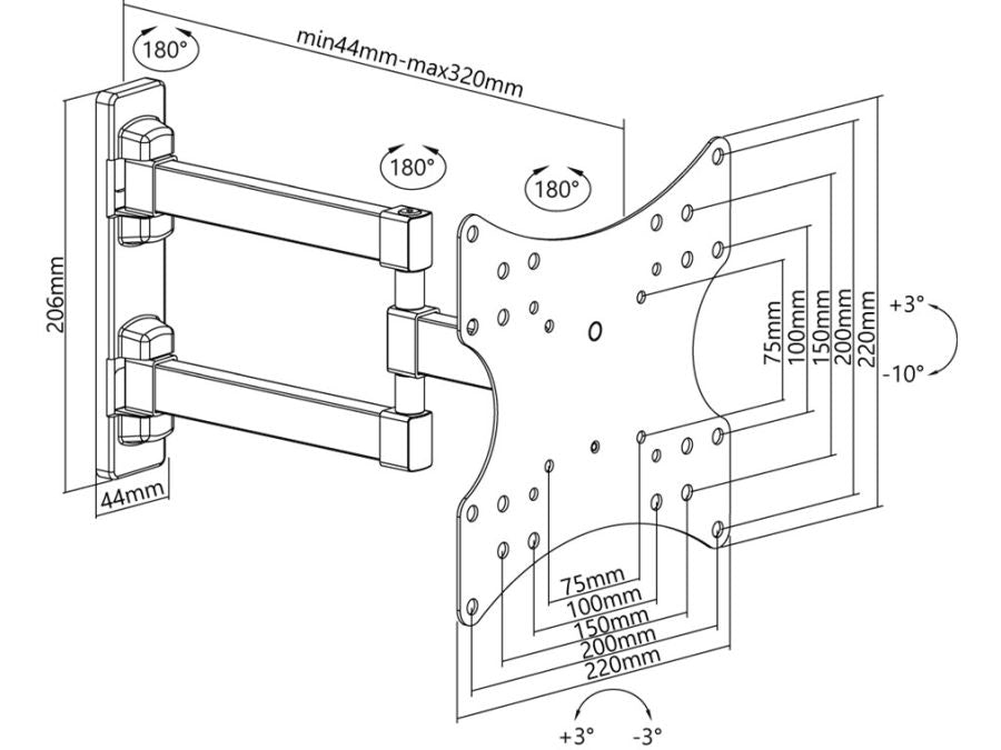 - The wall mount keeps the TV in the position with only 44mm elegantly flat and space-saving on the wall and can be extended up to 320mm to achieve the optimal viewing angle.